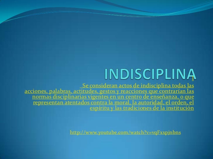 Desobediencia, insubordinación, insumisión, rebeldía, resistencia, insurrección. A indisciplina na educação infantil: Indisciplina em forma genuína que me contamina e domina perante a ruína o caos predomina e abomina barras clandestinas traçando um destino. Falta de respeito às regras, negação às normas, mal comportamento que compromete a convivência social. See more of indisciplina on facebook.